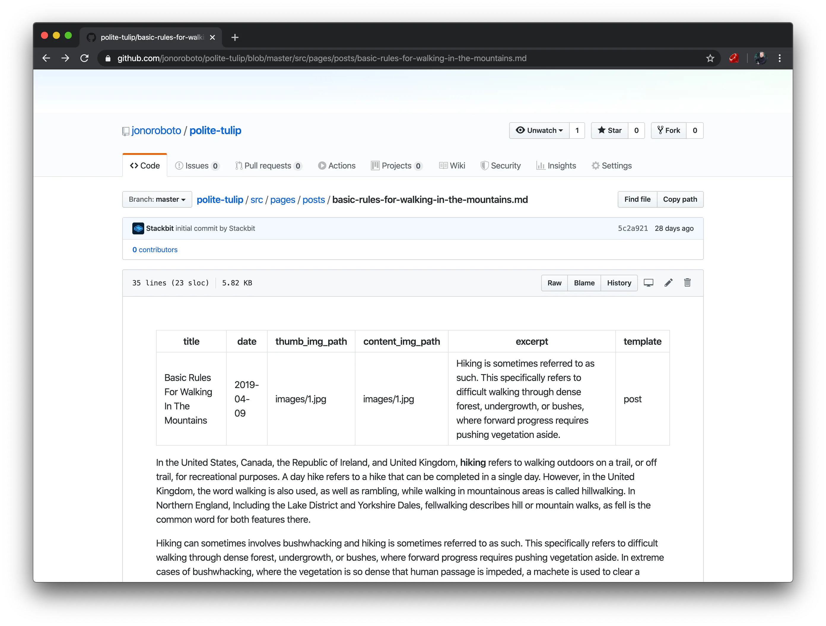The next step is fairly simple, but for the theme we chose, it requires some modifications. A good way of working out what frontmatter you need, is by opening the files that can be accessible from: /src/pages/posts