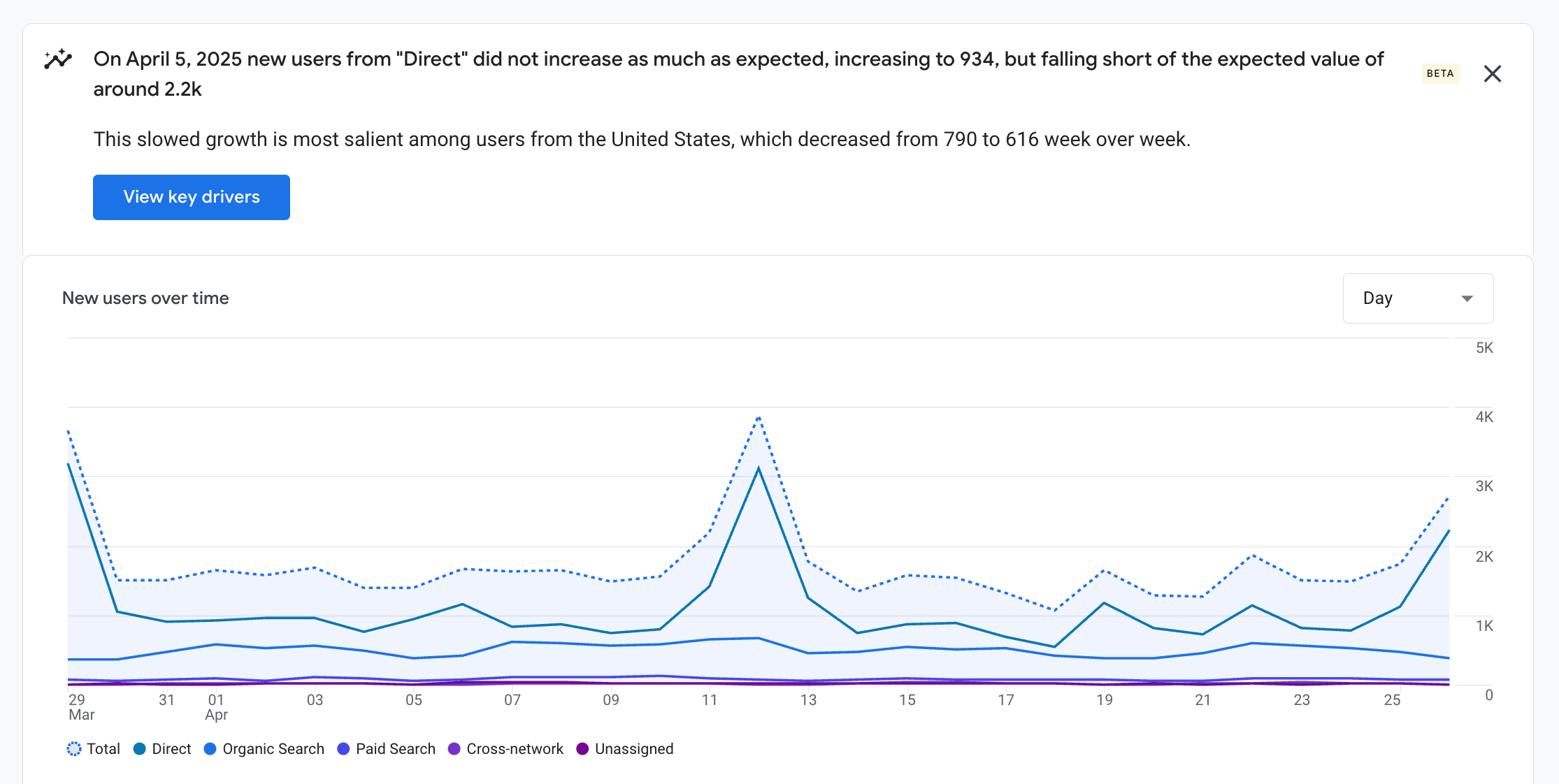 Don’t overlook Google’s AI tools—they make it easy to spot big-picture trends in your data. They often give you good insights as to if a trend has changed, and why that may be.